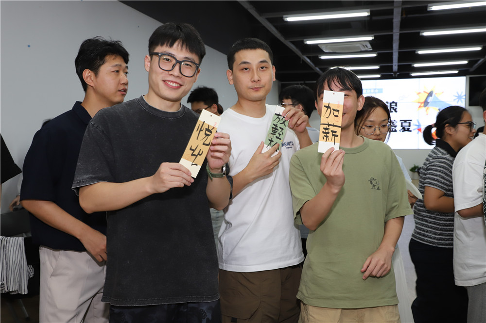 本次季度會特別設計“市集小賣部”,讓大家感受夏日市集的樂趣,水果、甜品、冰飲、炸雞、披薩應有盡有。同時還為小伙伴們準備了“幸運手寫簽”的抽取活動,大家共同參與抽簽、分享簽文,創造了一個輕松有趣的互動機會,拉進彼此的距離;每份手寫簽都成為各自專屬的祝福,給予大家一種簡單而美好的儀式感與獨特的紀念意義。