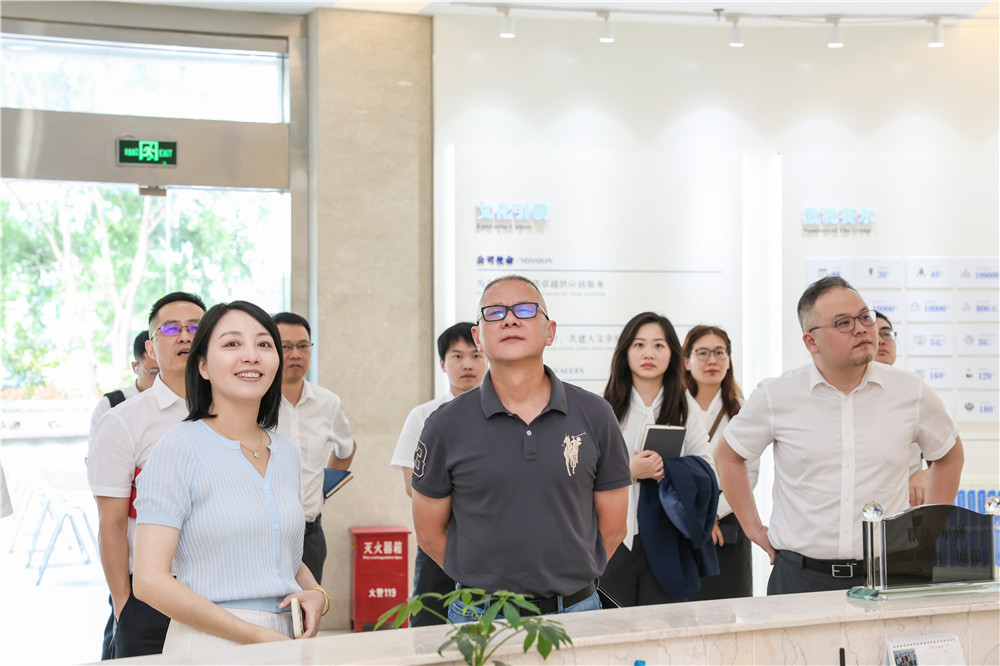 殷劍峰一行首先參觀了集團企業(yè)文化展廳,伍淑亞副總經理詳細介紹了集團的發(fā)展歷程、業(yè)務模式、文化理念等方面,重點闡述了賽爾在全球貿易鏈條中的定位、主要業(yè)務板塊、生態(tài)圈賦能舉措以及合伙人機制的管理特色。